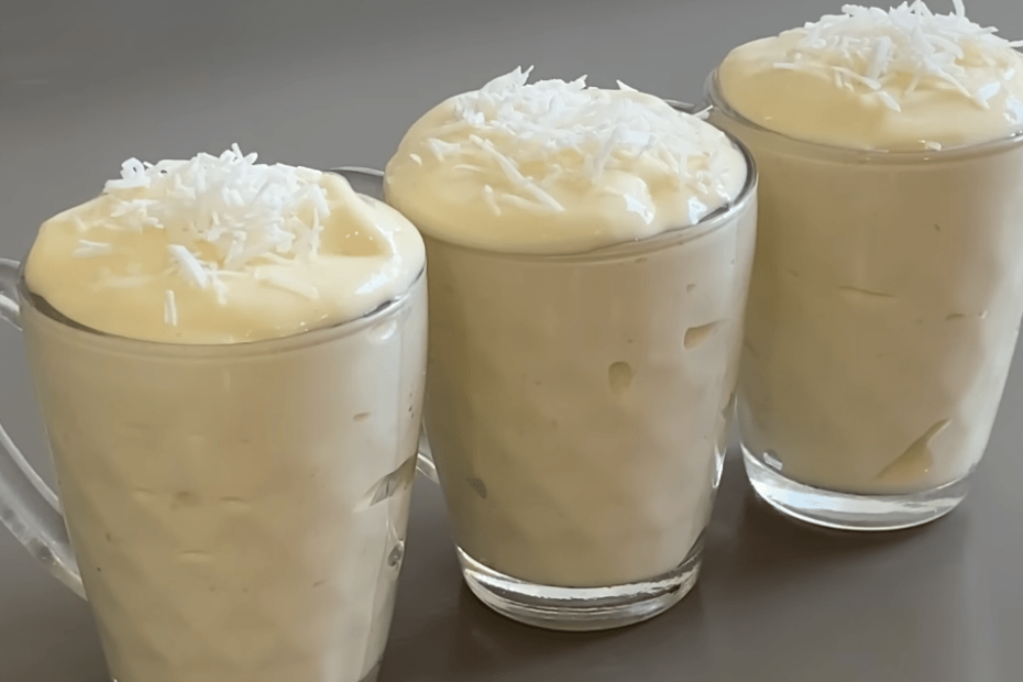 - Encha tacinhas ou uma travessa com a mistura e decore com coco ralado.