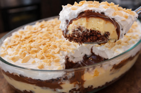 - Derretemos o chocolate ao leite no micro-ondas e misturamos com o creme de leite, formando uma ganache irresistível. Espalhamos essa deliciosa cobertura sobre a mousse, criando a terceira camada dessa sobremesa dos deuses.